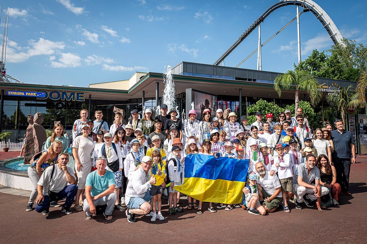 Freiburg, 15.06.2023 – Heute hatten 48 ukrainische Kinder und Jugendliche des Vaterhauses die Möglichkeit, den Europa-Park in Rust zu besuchen und dort einen ganzen Tag lang das spielerische Treiben zu genießen. Die Gruppe im Alter zwischen sechs und 18 Jahren hatte zusammen mit 20 Betreuer*innen sichtlich Spaß an dem bunten und vielfältigen Angebot des Europa-Park. Möglich gemacht hat dies der Regionalverband Freiburg des Deutschen Familienverbands e.V., der den größten Teil der Eintrittskarten gespendet hat, mit Unterstützung der Inhaberfamilie Mack (Europa-Park), die den Kindern und Jugendlichen auch eine kostenlose Verpflegung während des Parkbesuchs zur Verfügung gestellt hat.