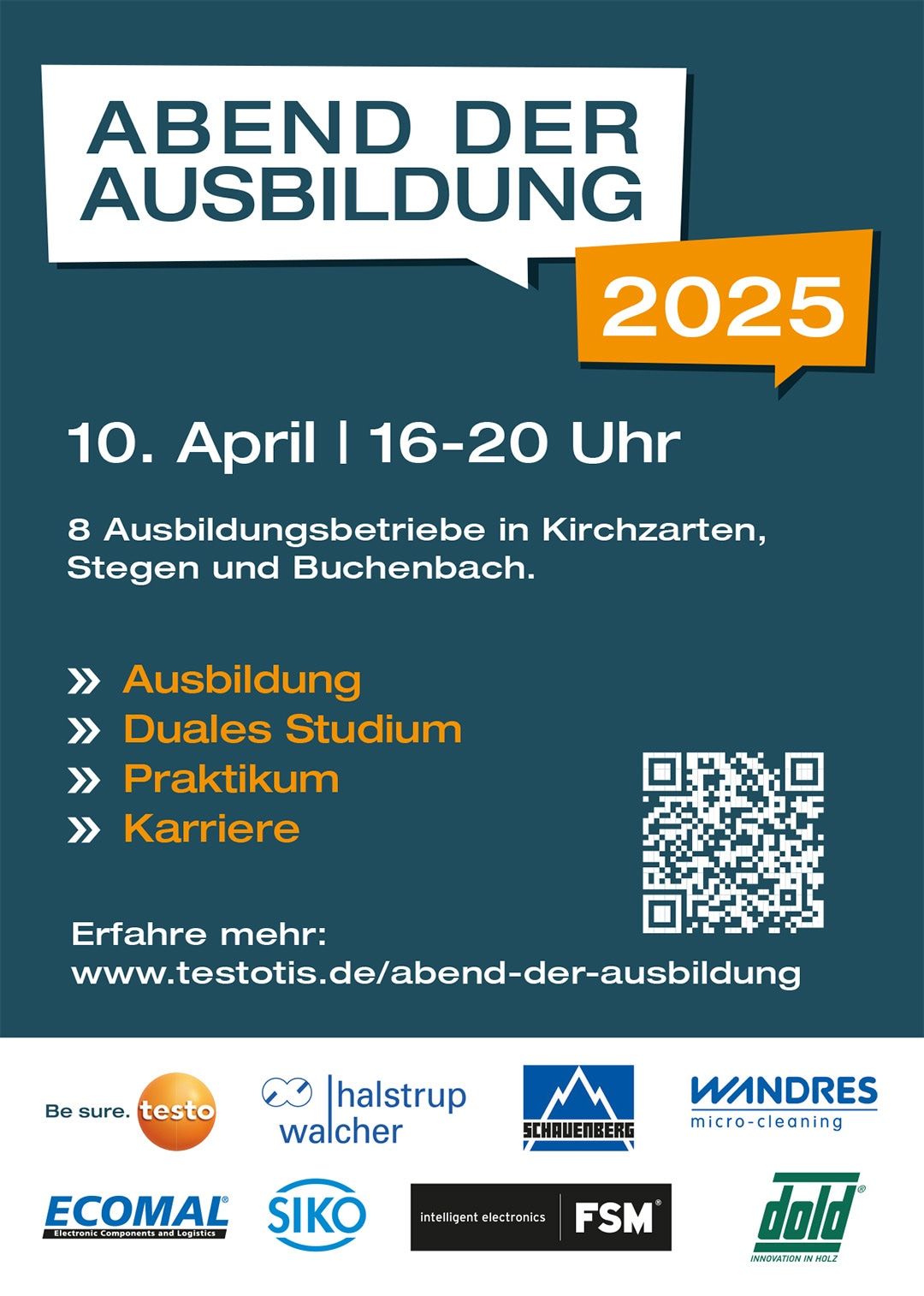 Abend der Ausbildung 2025 im Dreisamtal: www.testotis.de/abend-der-ausbildung zu finden.