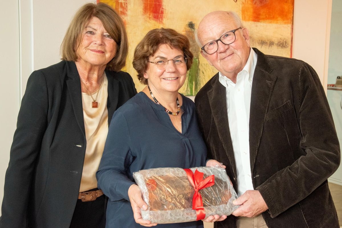 Verabschiedung des Ehepaars Rendler im neuen Elternhaus mit der ehemaligen Ärztlichen Direktorin der Klinik für Pädiatrische Onkologie und Hämatologie des Zentrums für Kinder- und Jugendmedizin der Universität Freiburg Charlotte Niemeyer (v.l.n.r. Inge Rendler, Prof. Dr. Charlotte Niemeyer, Bernd Rendler)