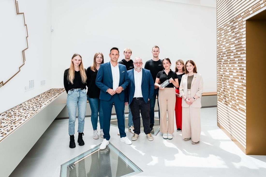 Die Personen v.l.n.r..: Michelle Wilhelm (Auszubildende badenova), Jessica Marx (Auszubildende badenova), Hans-Martin Hellebrand (Vorstandsvorsitzender badenova), Tobias Mößinger (Dualer Student badenova), Christoph Ebner (Leiter Förderverein DZNS), Cedric Scheffel (Dualer Student badenova), Magali Dibowski (Duale Studentin badenova), Edith Lamersdorf (Förderverein DZNS), Julia Wolrab (Wissensch. Leitung DZNS),