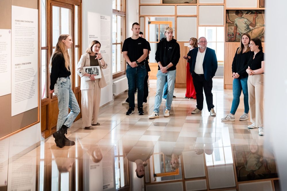 Im Rahmen einer Führung durch das DZNS für fünf badenova-Auszubildende und duale Student:innen übergab der Energiedienstleister vergangene Woche seine Spende an den Förderverein des Dokumentationszentrums. Die Einbindung des Nachwuchses ist dabei Zeichen seines gesellschaftlichen Selbstverständnisses. Denn eine lebenswerte Zukunft gelingt nur, wenn wir aus der Vergangenheit lernen. Das Unternehmen möchte den Nachwuchs nicht nur fachlich ausbilden, sondern auch ein Bewusstsein für gesellschaftliche Verantwortung schaffen. Solche Begegnungen und Einblicke sollen jungen Menschen vermitteln, wie wichtig es ist, Demokratie zu schützen und sich gegen das Vergessen einzusetzen.