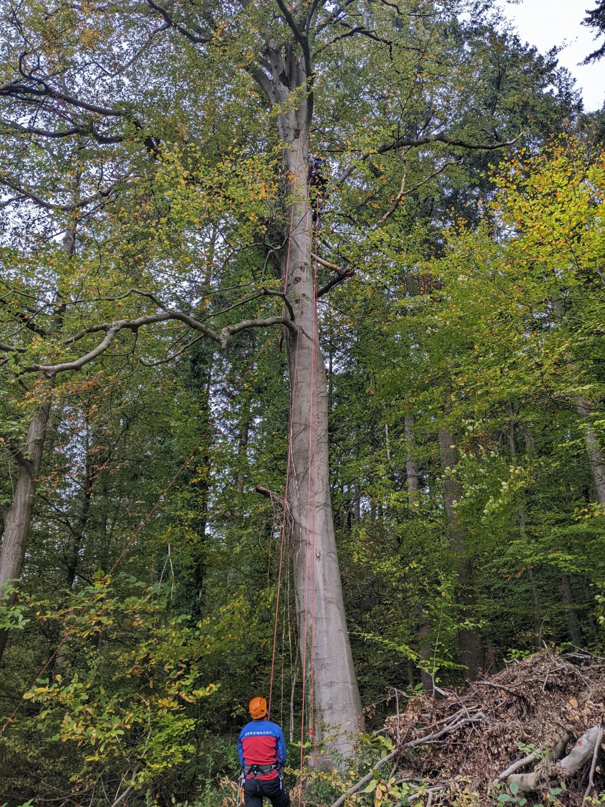 Kurz vor 13:00 Uhr erreichte die Freiburger Bergwacht ein Alarm von der Leitstelle: Ein 17-Jähriger befand sich in einer hilflosen Lage. Er war mit seinem Vater beim Geocaching auf der Jagd nach dem nächsten Schatz gewesen. Beim Geocaching, dem modernen Schatzsuche-Spiel mittels App, werden Gegenstände per GPS-Koordination gesucht. Im Fall der beiden Touristen war der Gegenstand in einem Wald bei Freiburg Zähringen in den Baumkronen zu suchen. Die beiden Suchenden waren mit der nötigen Ausrüstung ausgestattet und der 17-Jährige konnte den Baum erfolgreich erklimmen. Doch auf dem Rückweg auf ca. 10 – 15 Meter Höhe blockierte sein Abseilgerät. Er konnte sich oben nicht mehr selbst helfen und war mit der Lage überfordert.