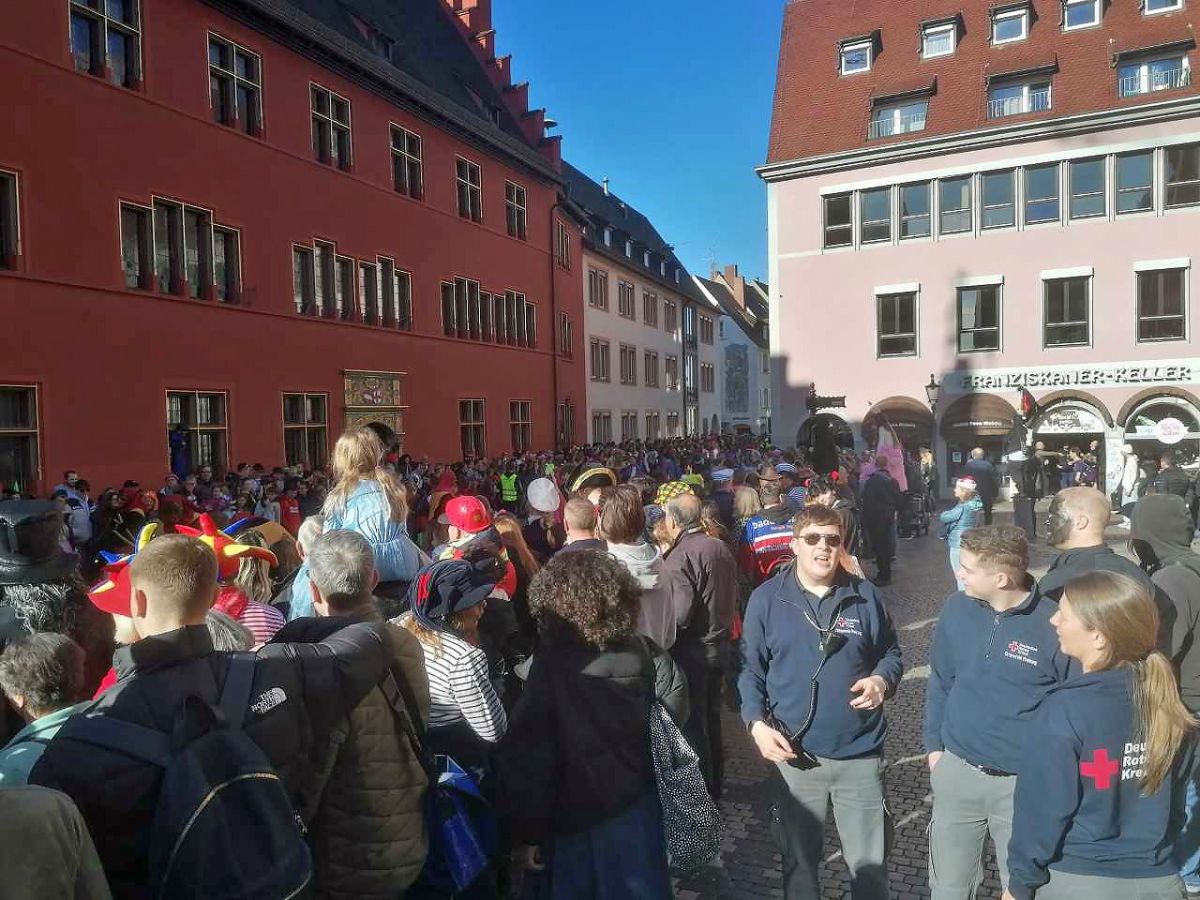 Matthias Weyand, DRK-Einsatzleiter in Freiburg, zeigte sich zufrieden mit dem Verlauf der Veranstaltungen in der Stadt. „Wir können von fast ruhigen Fasnet-Auftritten sprechen“, so die erste Bilanz nach dem Umzug in der Innenstadt.