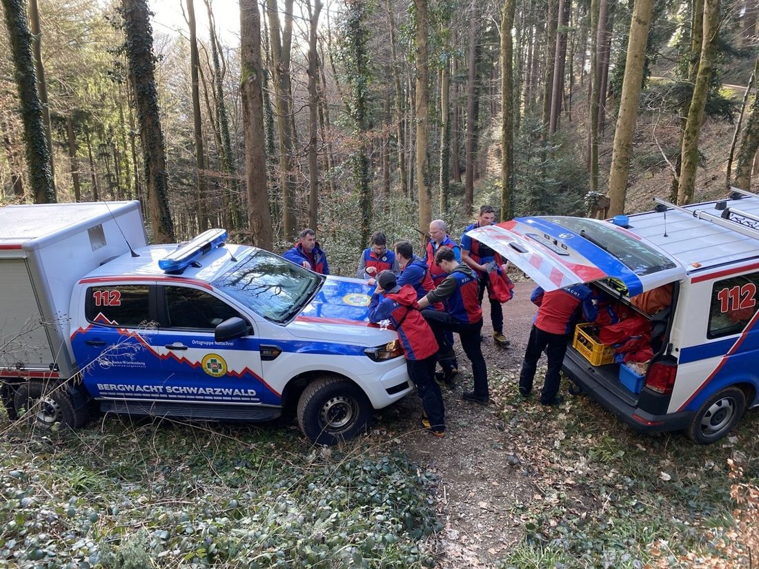 Bergwacht bei Sucheinsatz für hilflose Person bei Freiburg
