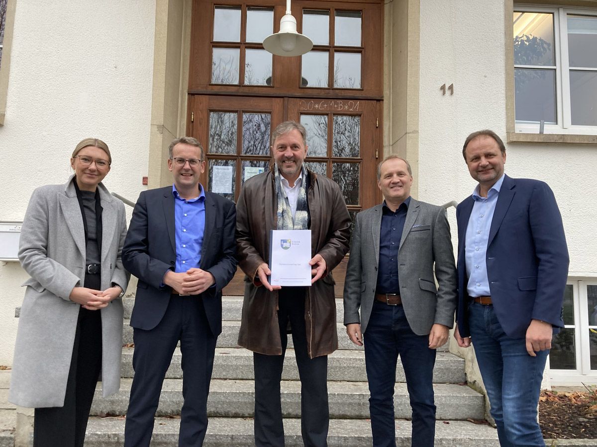v.l.n.r: Melanie Enderle (badenova Kommunal- und Regionalbetreuerin – Süd), Heinz-Werner Hölscher (badenova Vorstand), Josef Haberstroh (Bürgermeister Gemeinde Breitnau), Jochen Debus (Leiter Kommunalmanagement badenova), Reinhold Lohr (kaufmännischer Geschäftsführer bnNETZE)