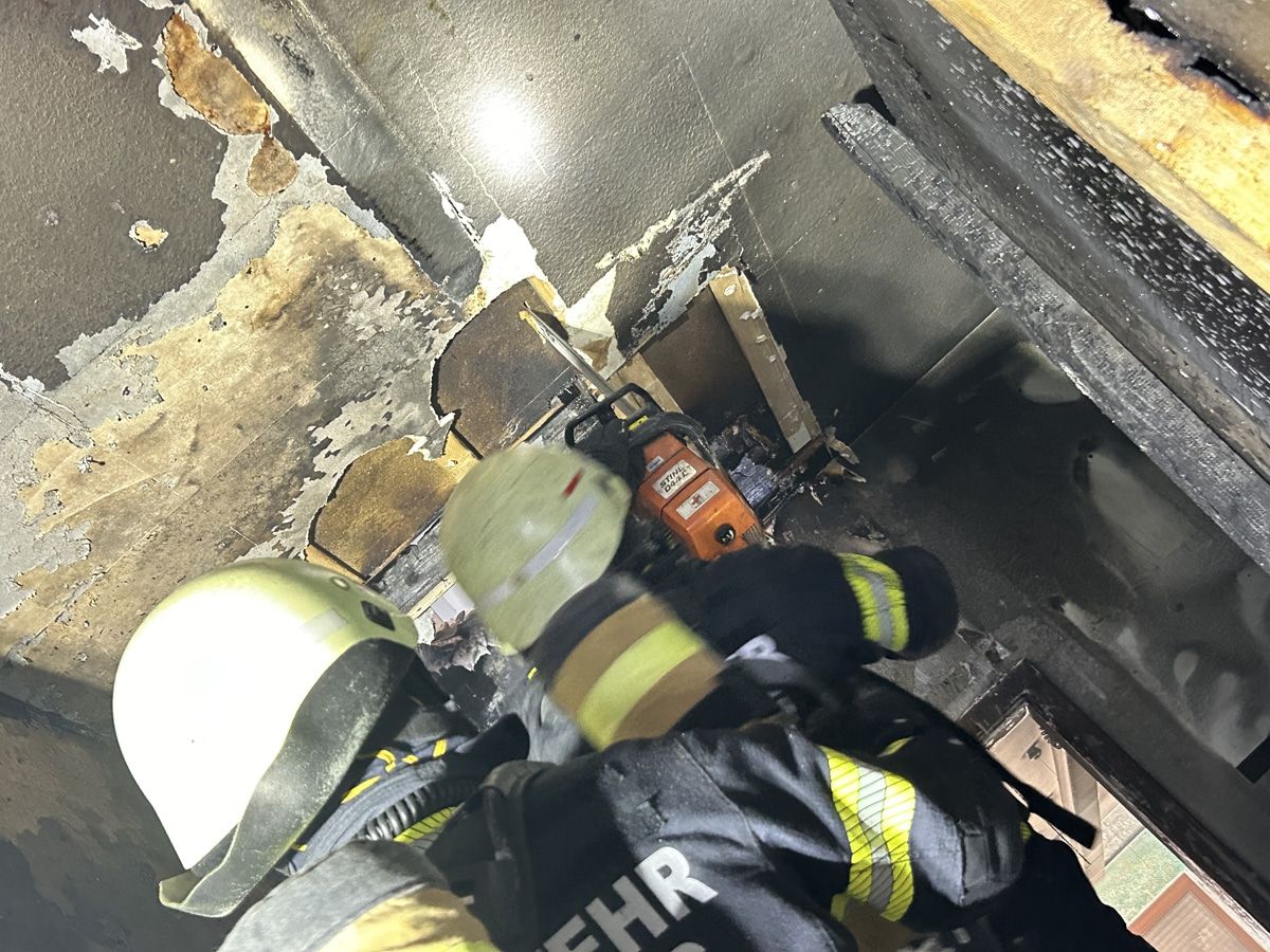 Am 13.06.2022 brannte das Zentrum zum ersten Mal, seither war die Feuerwehr Freiburg 9 mal an der gleichen Einsatzstelle. Allein 2024 jetzt zum vierten Mal. Vor Ort hat es sich für die Einsatzkräfte folgendermaßen dargestellt, in der Zwischendecke von Erdgeschoß zum Obergeschoß drang Rauch aus der Isolierung. Aus unbekannter Ursache schwellte die dortig verbaute Isolierung zwischen den Deckenbalken. Die Einsatzkräfte bestehend aus beruflichen und ehrenamtlichen Angehörigen öffneten unter Atemschutz die Decken und Bodenplatten mit technischem Gerät. Mit zwei vorgenommenen Löschrohren wurde anschließend Löschwasser aufgebracht. Mit Unterstützung von Wärmebildkamera und durch das von Feuerwehrbeamten mitgebrachte handwerkliche Wissen konnte so die Glutnester aufgefunden werden.