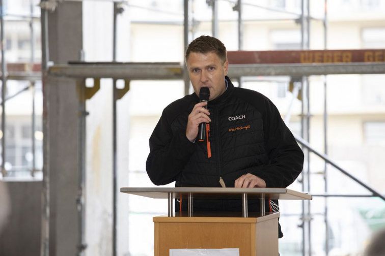 Vater Daniel Bühler beim Richtfest Neues Elternhaus Förderverein für krebskranke Kinder Freiburg