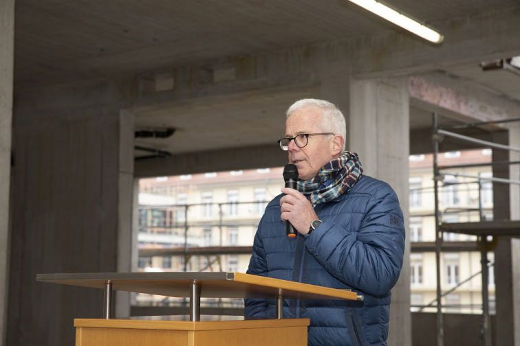 Vorstand Hans Peter Vollet beim Richtfest Neues Elternhaus Förderverein für krebskranke Kinder Freiburg