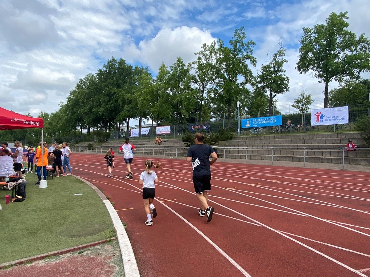 Über 23.000 Euro konnten beim diesjährigen Freiburger 24h-Lauf für Kinderrechte am Samstag, 25. und Sonntag, 26. Juni 2022 erlaufen werden. Insgesamt liefen die 28 teilnehmenden Teams 15.963 Runden im Freiburger Seepark-Stadion.