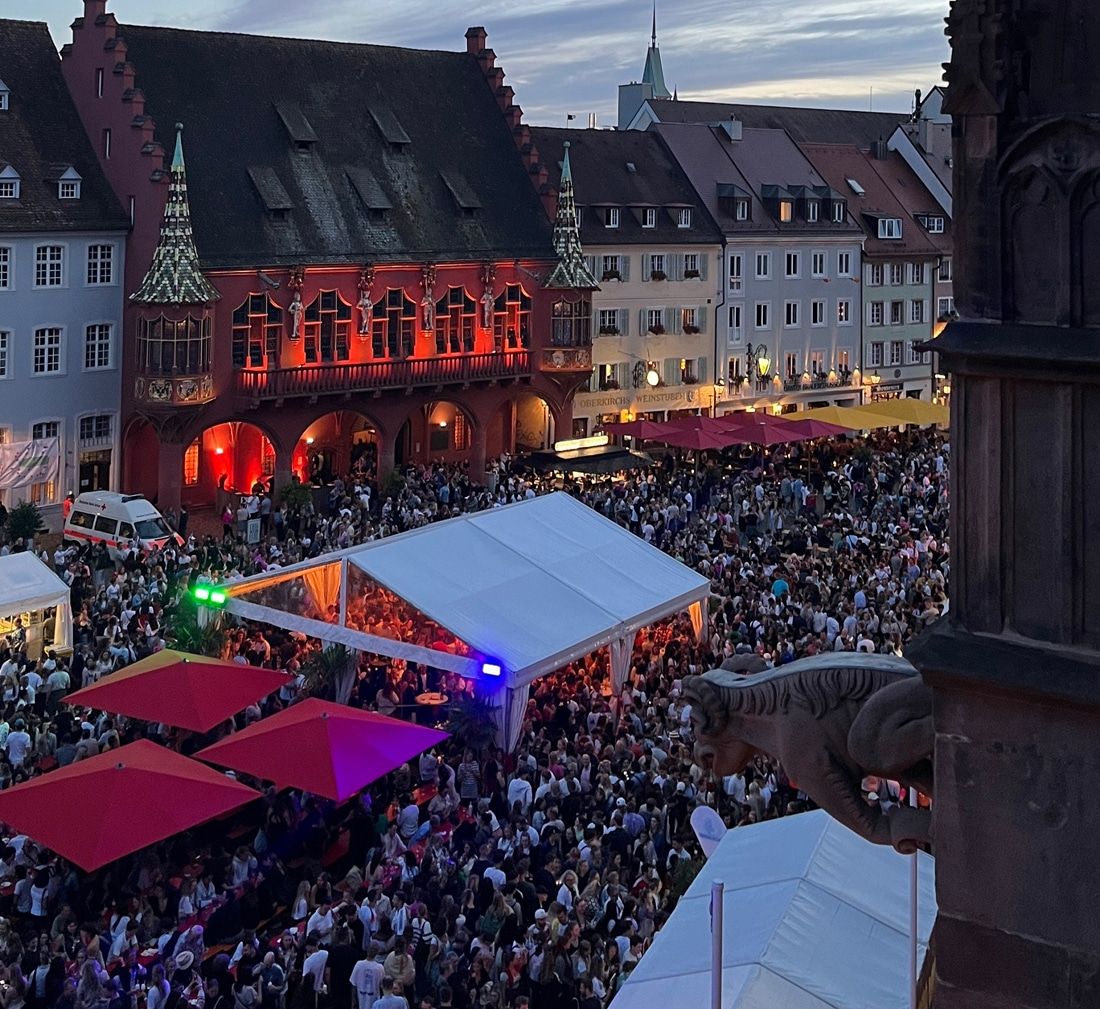 Knapp 80.000 Besucher_innen aus Freiburg und der Region kamen von 4. bis 9. Juli 2024 auf den Freiburger Münsterplatz zum Freiburger Weinfest. Für insgesamt sechs Tage stand der Platz rund ums Freiburger Münster mit 60 regionalen Betrieben und mehr als 400 Weinen und Sektsorten sowie verschiedenen kulinarischen Spezialitäten im Zeichen des badischen Weins.