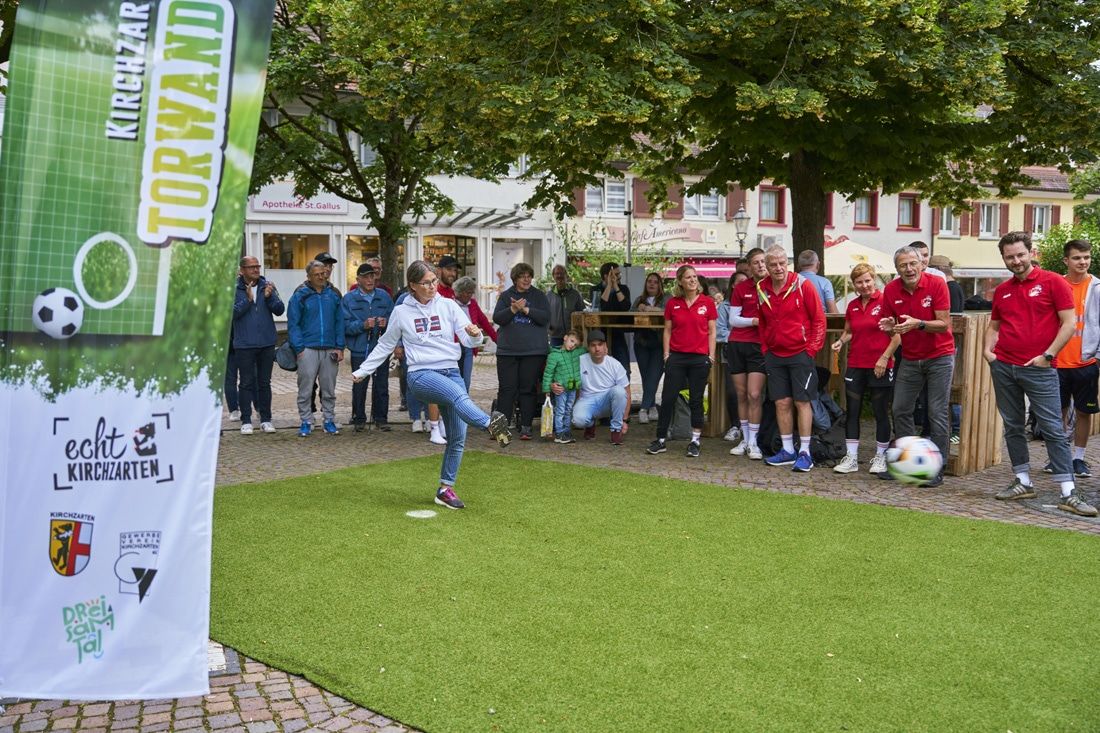 Das i-Tüpfelchen dieser Kampagne sind die 1. Kirchzartener Torwand Open, die am Freitag, den 14.06. erfolgreich gestartet sind. Gleich 9 Mannschaften traten an diesem Qualifikations-Freitag an. Sehr zur Freude des Gewerbevereins-Vorsitzenden Dietmar Junginger hatte sich auch ein Team der Verwaltung der Gemeinde Kirchzarten angemeldet, mit Bürgermeister Andreas Hall. Mittlerweile stehen in der Rangliste bereits 16 Teams und zwei weitere Qualifikations-Freitage stehen noch an. Auch Einzelwettbewerbe werden angeboten, gegen eine kleine Teilnahmegebühr können sich mittwoch- und donnerstagnachmittags sowie samstagvormittags alle, die schon immer mal auf die Torwand schießen wollten, ausprobieren. Wer möchte, wird in eine Rangliste aufgenommen. Sowohl für die Einzelspieler als auch die Teams geht es um den Einzug ins Finale, das am Samstag, 13.07. zwischen 11:00 und 14:00 Uhr ausgespielt wird. „Wir wollten natürlich unser Finale auch am Finalwochenende der EM ausspielen und gleichzeitig Rücksicht auf die Veranstaltungen des parallel stattfindenden Black Forest Ultra Bike Marathons nehmen“, so Gewerbevereins-Vorsitzender Dietmar Junginger. Dem Teamsieger winken ein Wanderpokal, ein Partybier-Fässle sowie ein Einkaufsgutschein des Gewerbevereins in Höhe von 100 Euro. Der Einzelsieger bekommt ebenfalls ein Party-Bierfässle sowie einen Einkaufsgutschein in Höhe von 50 Euro. Teams können sich weiterhin anmelden, für die Einzelwettbewerbe sind keine Anmeldungen erforderlich. Alle Infos dazu finden Sie unter www.echt-kirchzarten.de
