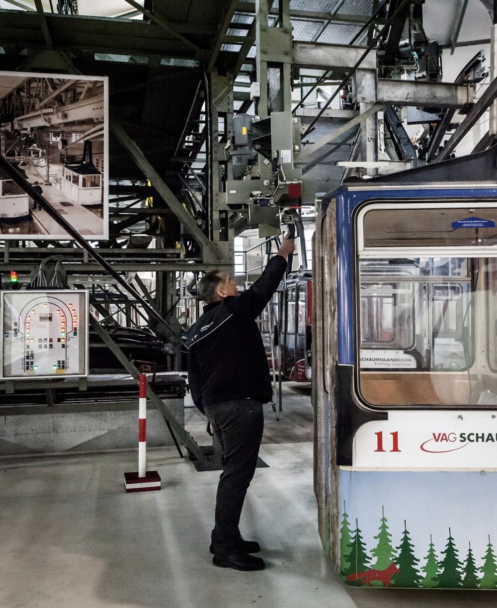 Dass bei einer fast 95 Jahren alten Seilbahn regelmäßige Wartungsarbeiten ausgeführt werden müssen, versteht sich von selbst. 16 qualifizierte Seilbahn-Facharbeiter der VAG kümmern sich tagtäglich um den reibungslosen Fahrbetrieb und führen insgesamt mehr als 230 Wartungsblöcke und Kontrollen pro Jahr an der Seilbahntechnik aus. „Das sind etwa 98 Prozent der anfallenden Arbeiten“, berichtet Günter Voigt, technischer Leiter der Schauinslandbahn.