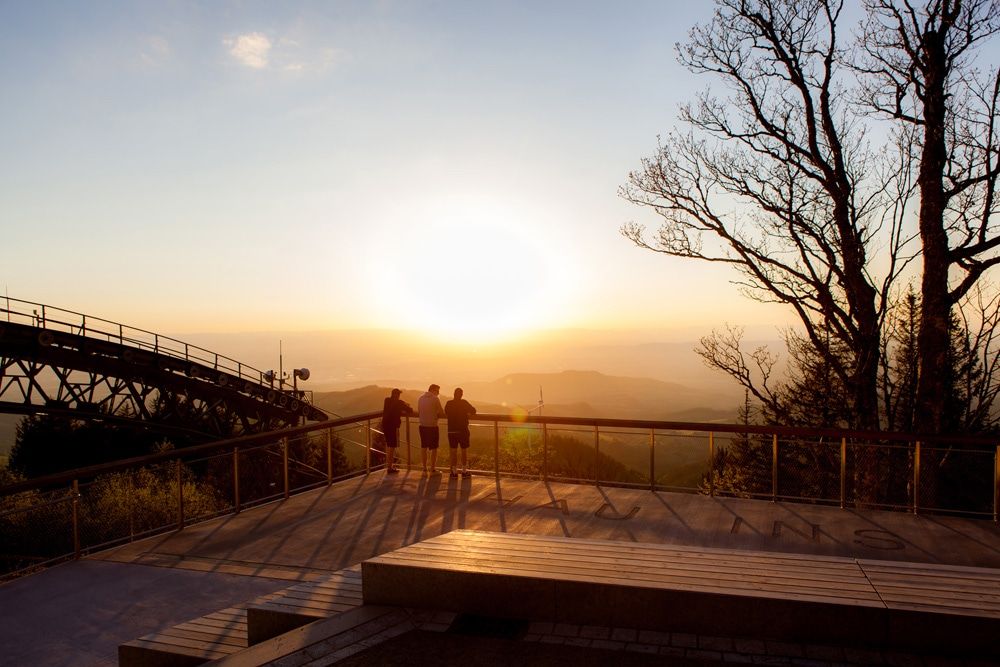 Noch in die Zeit der Corona-Pandemie fiel die Eröffnung der neuen barrierefreien Panoramaterrasse und des Baumhausspielplatzes neben der Bergstation. Wegen Einschränkungen zu dieser Zeit konnte weder der 90. Geburtstag der Schauinslandbahn noch die Eröffnung von Aussichtsplattform und Baumhäusern gebührend gefeiert werden. „Mit dieser Erweiterung haben wir einen echten Mehrwert geschaffen – nicht nur für Familien“, berichtet Tobias Kunz. Freiburgs höchstgelegener Spielplatz verfügt über mehrere Baumhäuser, eine Rutschbahn – und bietet wie die gesamte Terrasse einen Panoramablick über Freiburg, den Kaiserstuhl bis zu den Vogesen. „Was gibt es Schöneres, als bei einem Cappuccino vom Kiosk auf der Panoramaterrasse zu entspannen, während die Kleinsten in den Baumhäusern ihre Abenteuer erleben“, sagt Kunz und berichtet von „sehr, sehr vielen positiven“ Rückmeldungen der Gäste. „Bevor sich die jungen Gäste in den Baumhäusern austoben können, wird die Anlage jeden Morgen auf ihre Sicherheit geprüft“, erläutert Kunz.