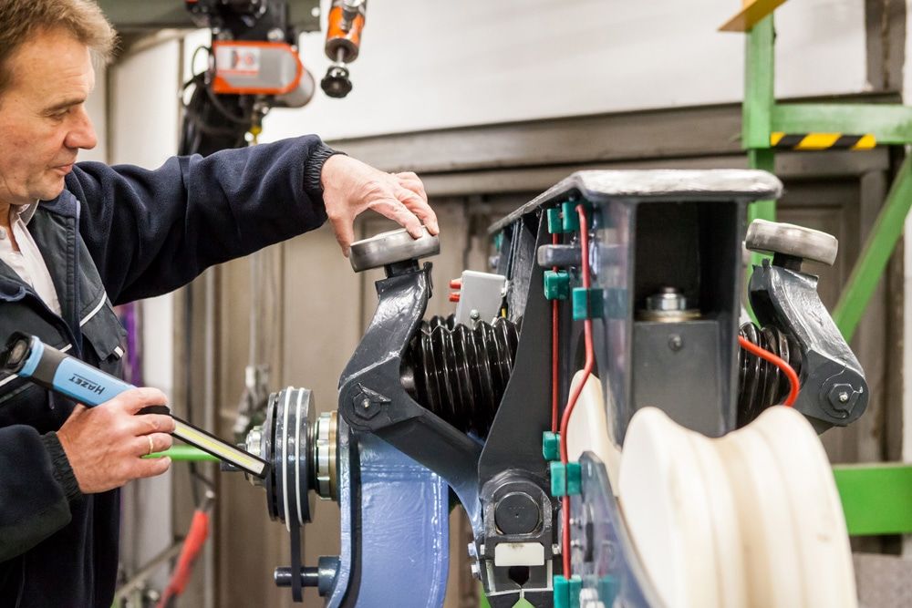 Seit wenigen Monaten abgeschlossen ist die Modernisierung und Erweiterung der Werkstatt auf der Bergstation. Der Grund für diese Erweiterung ist ein erfreulicher: Die Fahrgastzahlen seit dem Umbau 2012/2013 sind kontinuierlich auf das aktuelle Niveau gestiegen. Mehr Fahrten bedeuten auch mehr Wartungen der Laufwerke: Nach 8500 absolvierten Kabinenfahrten stehen Laufwerkrevisionen auf dem Programm. Statt zuvor alle 36 Monate für eine Kabine liegt der durchschnittliche Abstand zwischen diesen Routinearbeiten inzwischen bei 24 Monaten. „Mit einem zusätzlichen Raum als Anbau des ersten Obergeschosses der Bergstation haben wir die Arbeitsabläufe weiter optimiert und unterschiedliche Tätigkeiten räumlich getrennt“, erläutert Günter Voigt bei einem Rundgang durch die Technikräume.
