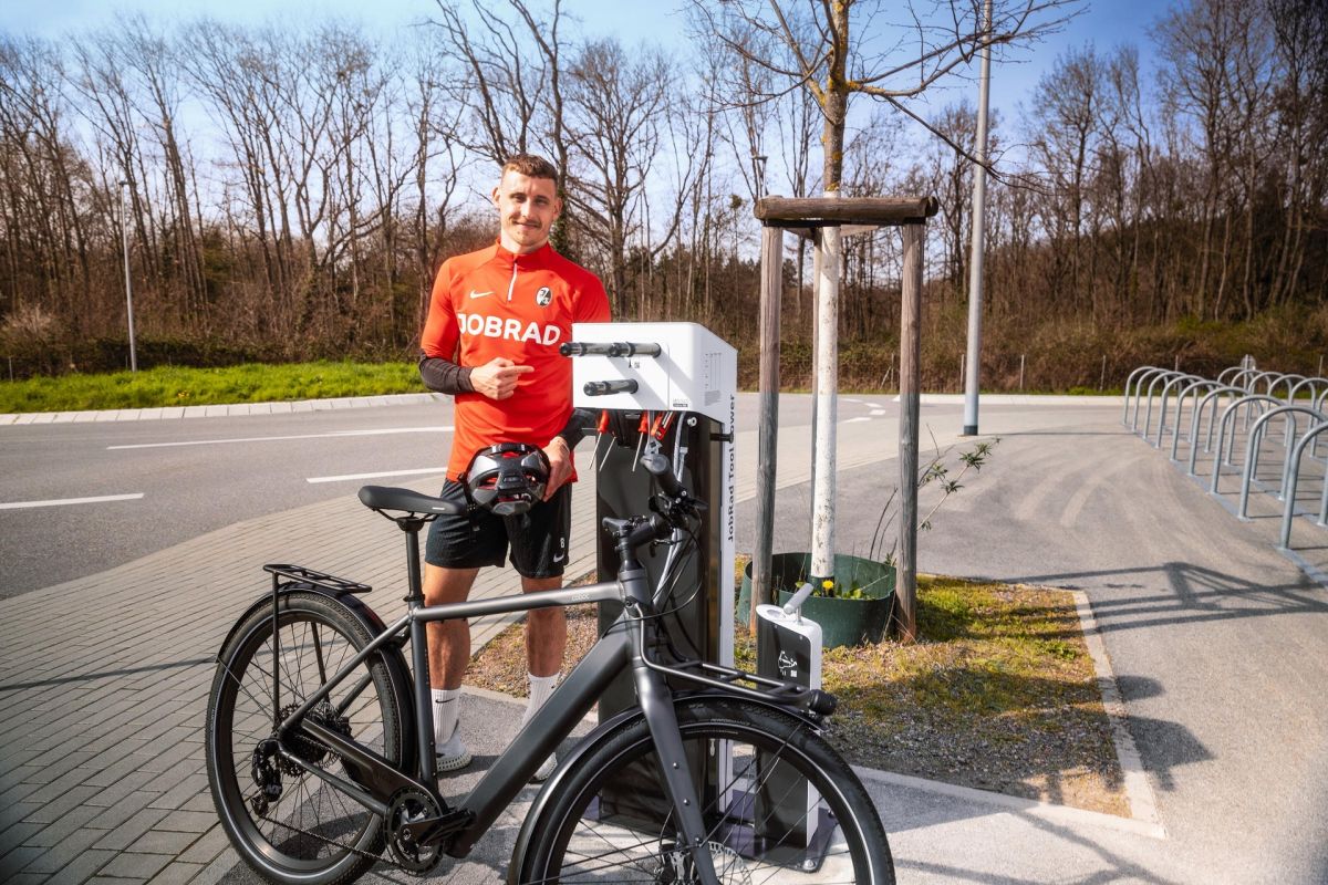 Mit den neuen Servicestationen am Europa-Park Stadion bekommen SC-Fans ihre Räder schnell wieder fit – und können sorgenfrei das Spiel genießen.