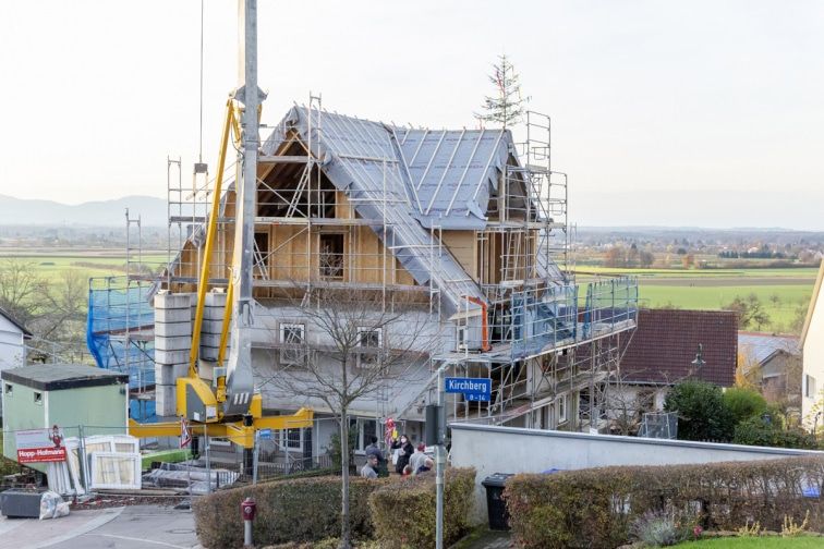 Er ist das sichtbare Zeichen dafür, dass der Rohbau des Umbauprojekts der Bürgergenossenschaft Heuweiler nun fertiggestellt ist. Um das Dorfbild zu bewahren, günstigen Wohnraum zu schaffen und ein Ladengeschäft für die Nahversorgung einzurichten, hatte sich der Großteil der Bevölkerung dafür ausgesprochen, den Alt-Vogtshof zu erhalten.