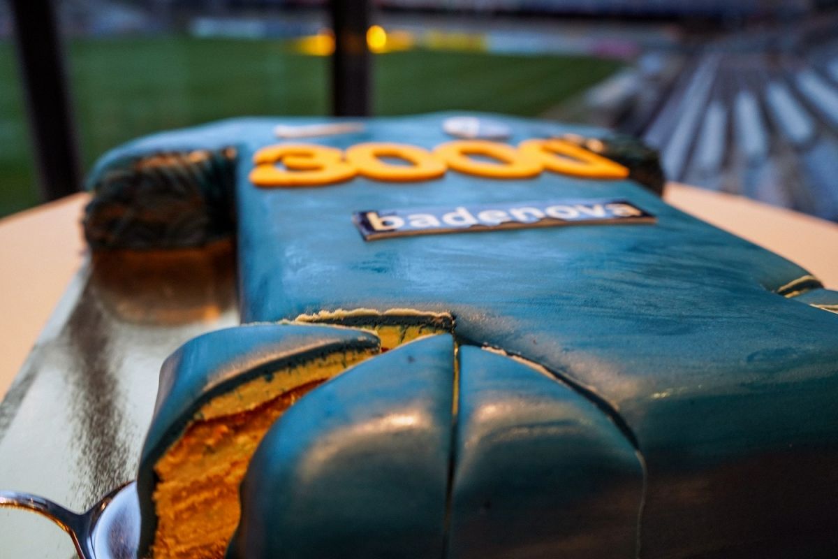 Insgesamt erzielte die Versteigerung der 11 signierten Sondertrikots ein Wert in Höhe von 2.719,58 Euro. badenova rundete den Betrag auf 3.000 Euro auf. In Form eines Kuchens übergaben Greta Stegemann (SC Freiburg Spielerin), Birgit Bauer (Abteilungsleiterin Frauen- und Mädchenfußball SC Freiburg) und Manuel Zimmermann (Leitung Unternehmenskommunikation badenova) den obligatorischen Scheck im Dreisamstadion. Dr. Sandra Hook (Abteilungsleiterin Klimaschutz und Luftreinhaltung der Stadt Freiburg) und Anne-Kathrin Brand (Umweltschutzmanagerin Stadt Freiburg) freuten sich den „zuckersüßen“ Scheck für das Projekt „Unser Klimaquartier Waldsee“, entgegennehmen zu dürfen. Mit der Spende soll nun ein neues „Fairschenkhäusle“ gebaut werden. Ähnlich wie bei einer Tauschbörse werden nicht mehr gebrauchte Gegenstände abgegeben, die von anderen weiterverwendet werden können. Wo das Häusle stehen wird, ist noch nicht entschieden. Die Stadt Freiburg prüft aktuell passende Standorte.