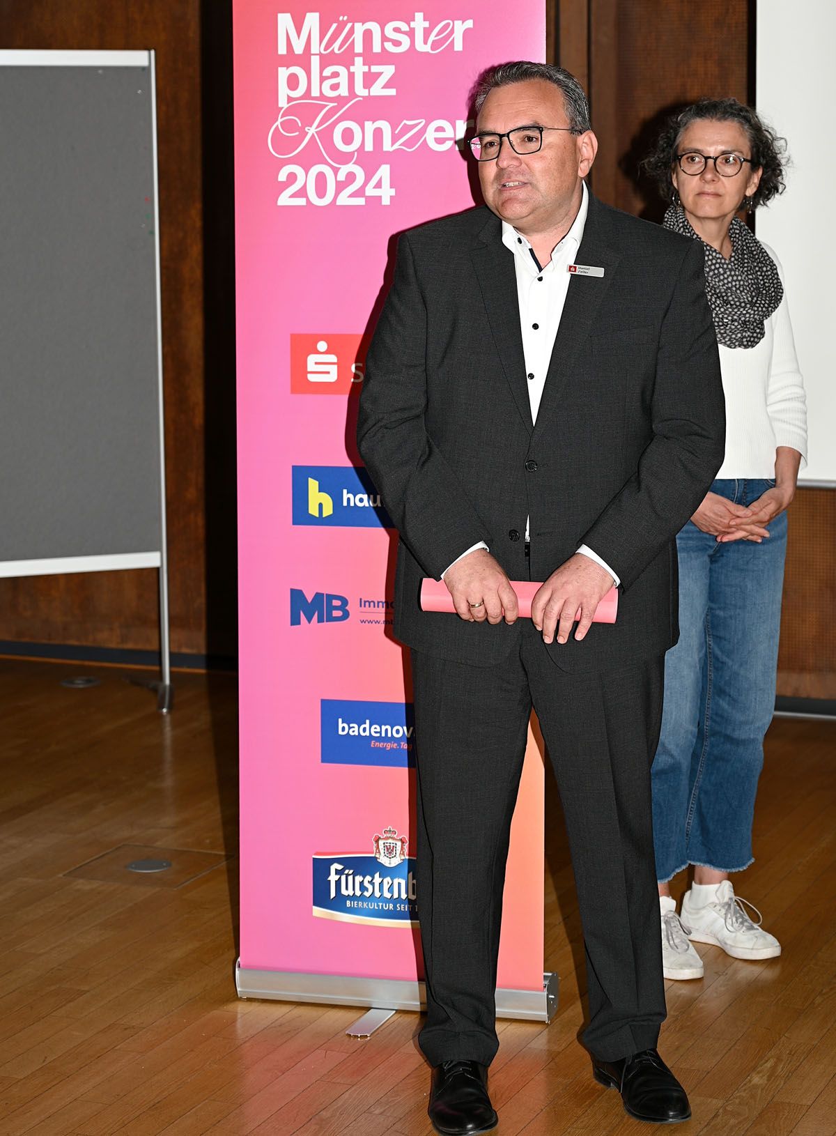 Daniel Zeiler (Vorsitzender des Vorstandes der Sparkasse Freiburg) freut sich über die 2. Runde der Münsterplatzkonzerte
