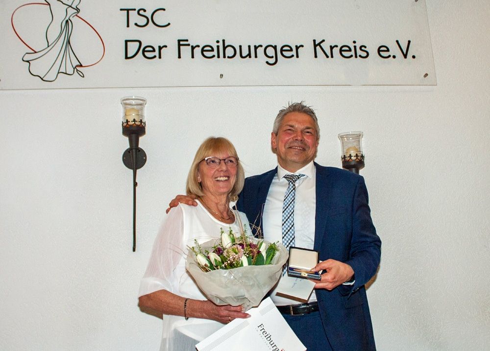 Zwei Menschen, Sportlerin und Sportler mit Leib und Seele, wurden in den vergangenen Tagen mit der Freiburger Sport-Verdienstmedaille ausgezeichnet: Gudrun Belledin und Franz-Jürgen Zeiser. Belledin engagierte sich 30 Jahre lang im Vorstand des Tanzsportclub (TSC) „Der Freiburger Kreis“, Zeiser war bis Dezember Vorsitzender des Sportkreises Freiburg.