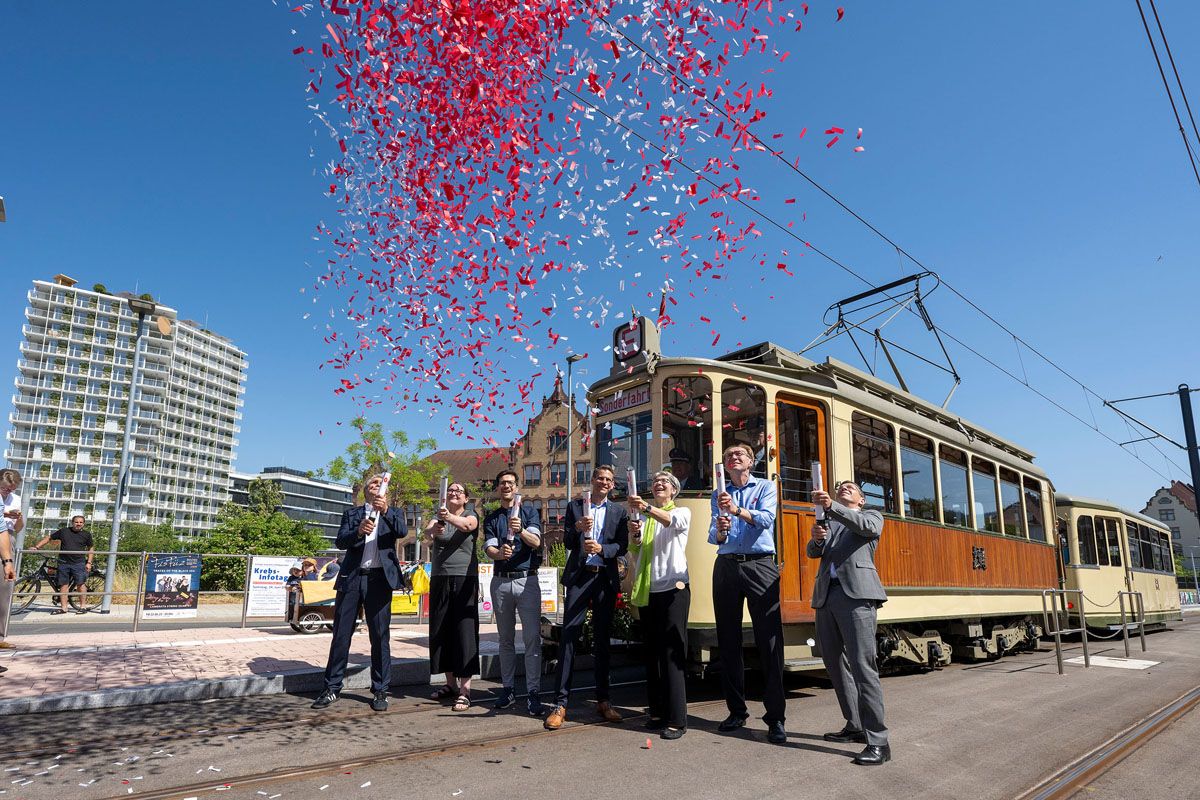 Martin Horn, Oberbürgermeister von Freiburg betont beim offiziellen Eröffnungstermin, dass der Ausbau des Stadtbahnnetzes Teil des Konzepts zum Erreichen der ambitionierten CO2-Reduktionsziele ist. Stephan Bartosch, VAG-Vorstand, sagt, dass die Baustelle trotz krisenbedingter Hürden planmäßig und im Kostenrahmen umgesetzt werden konnte. VAG-Vorstand Oliver Benz sieht die Stadtbahn als Rückgrat des Mobilitätskonzepts für das Quartier und hebt zusätzliche Angebote wie den "Abholservice per Telefon" (AST) und die Mobilitätsberatung für Unternehmen hervor. Staatssekretärin Elke Zimmer würdigt den neuen Streckenabschnitt und bezeichnet den Landeszuschuss als „sinnvolle Investition in die Lebensqualität der Freiburger Bürgerinnen und Bürger“. Die Gesamtbaukosten von etwa 19,4 Millionen Euro werden durch Zuschüsse des Landes Baden-Württemberg in Höhe von etwa 10,6 Millionen Euro und rund 8,8 Millionen Euro der Stadt und der VAG finanziert. Alles wurde im geplanten Zeit- und Kostenrahmen verwirklicht.