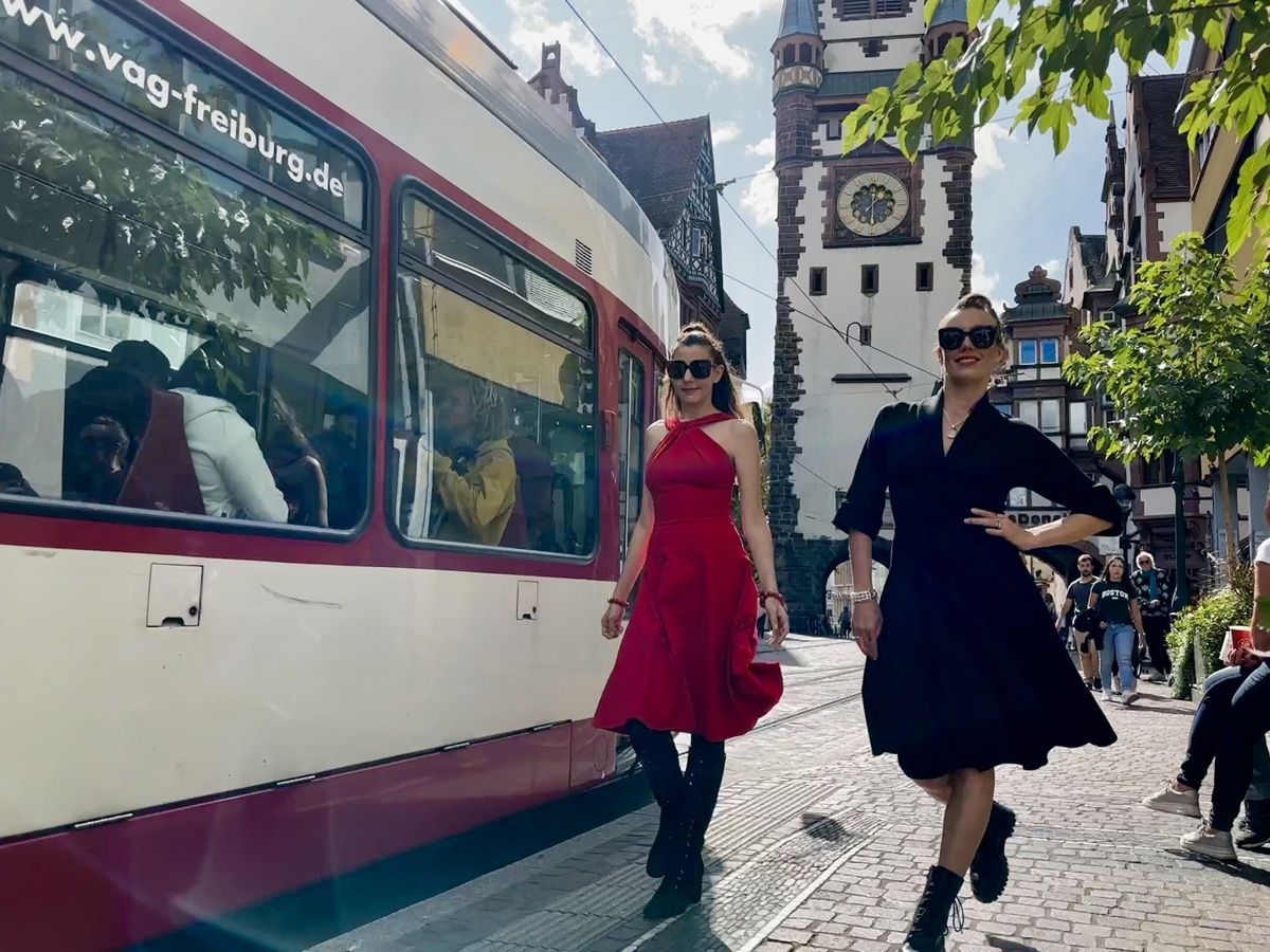 Modeschau in der Straßenbahn: Mit einer Flashmob haben die Freiburger Verkehrs AG (VAG) und die Freiburg Wirtschaft Touristik und Messe (FWTM) am Wochenende Fahrgäste im ÖPNV überrascht. Mit der Aktion in verschiedenen Trams machten sie auf das Fashion-&-Food-Festival und die damit verbundene Freifahrt im VAG-Netz am Samstag, 30. September, aufmerksam.