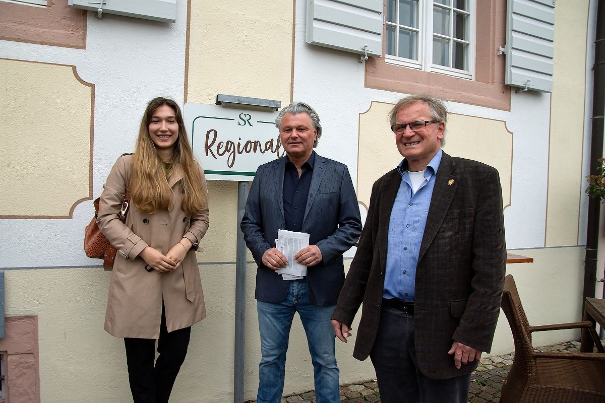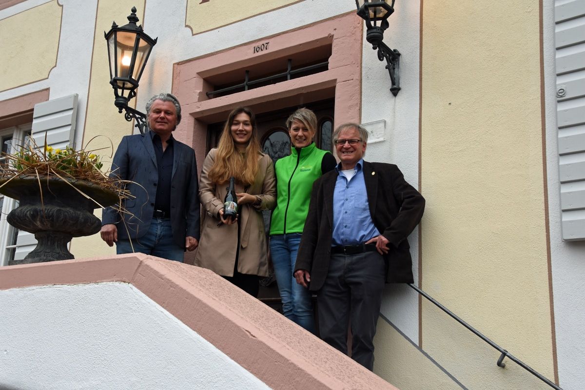 Badische Weinprinzessin Geraldine Liebs aus FR-Opfingen, Hotelier René Gessler, Günter Linser vom Tuniberg Wein e.V.