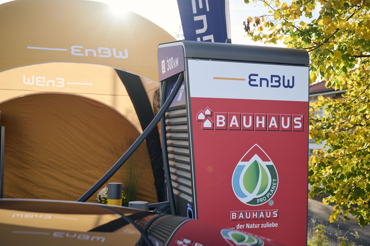 BAUHAUS und EnBW nehmen in Freiburg im Breisgau gemeinsam zwei Schnellladepunkte für Elektroautos in Betrieb
