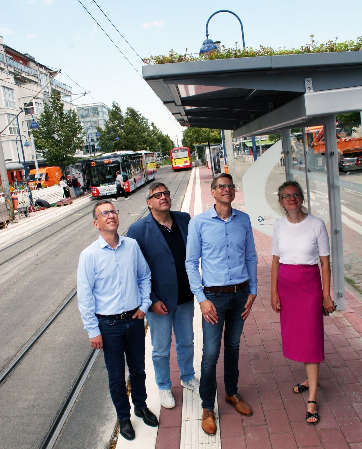 „Die Dachbegrünung bietet zahlreiche Vorteile: sie filtert Staub, speichert Regenwasser und sorgt an heißen Tagen für ein besseres Klima im Wartebereich. Darüber hinaus ist sie ein neuer Rückzugsort für allerlei Insekten. Wir freuen uns daher sehr, nun auch in Freiburg unsere Fahrgastunterstände mit Gründach errichten zu können!“, so Vivian Schiffmann.