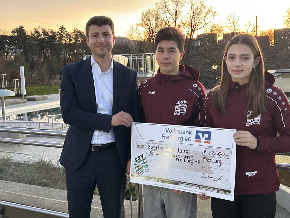 Mit einer Spende in Höhe von 2.000 Euro unterstützt die Volksbank Freiburg den Schwimmsportverein Freiburg. Der Verein setzt sich für die Förderung und Betreuung junger Nachwuchstalente im Schwimmsport ein.