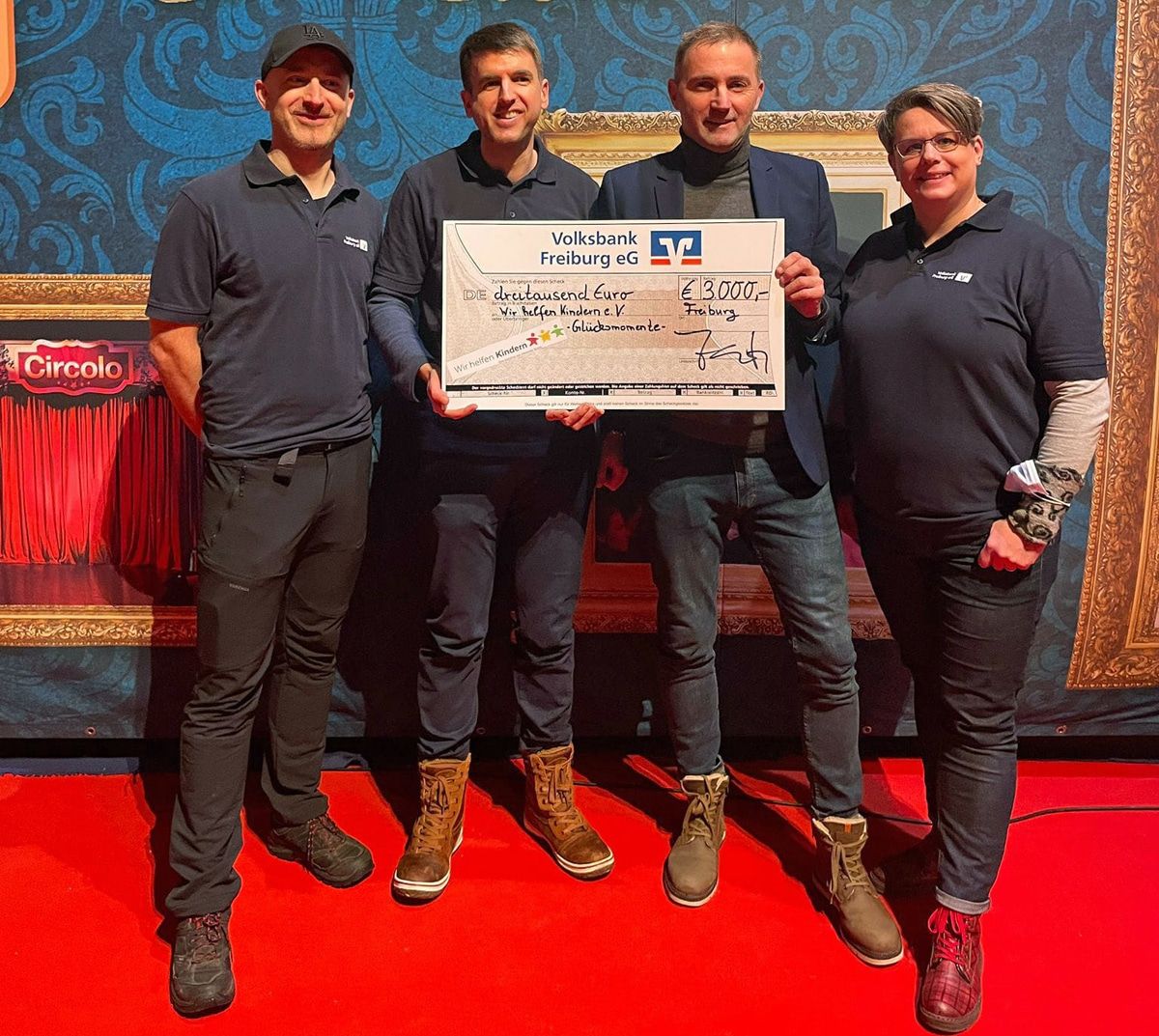 Mit einer Spende in Höhe von 3.000 Euro und tatkräftiger Hilfe vor Ort hat die Volksbank Freiburg in diesem Jahr die Aktion von „Wir helfen Kindern e.V“ im Circolo unterstützt.