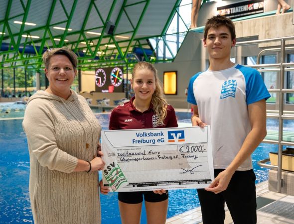 Der Schwimmsportverein Freiburg e.V. betreut und fördert junge Talente im Schwimmsport. Mit einer Spende von 2.000 Euro unterstützt die Volksbank Freiburg das Engagement des Vereins.