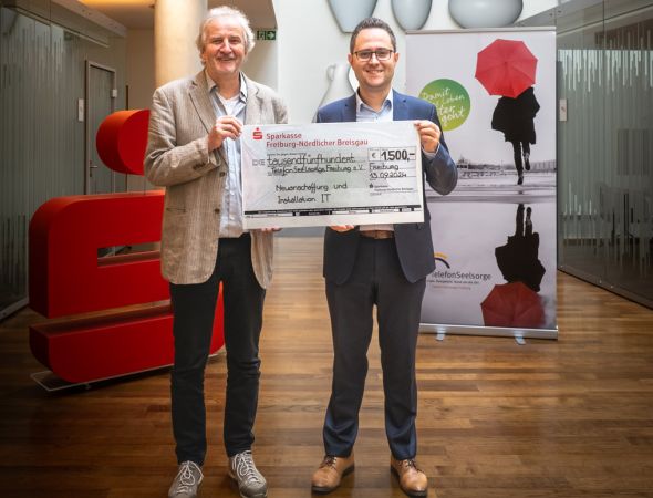 Telefonseelsorge: Sparkasse Freiburg-Nördlicher Breisgau spendet 1.500 Euro für die neue Technik der Telefonanlage