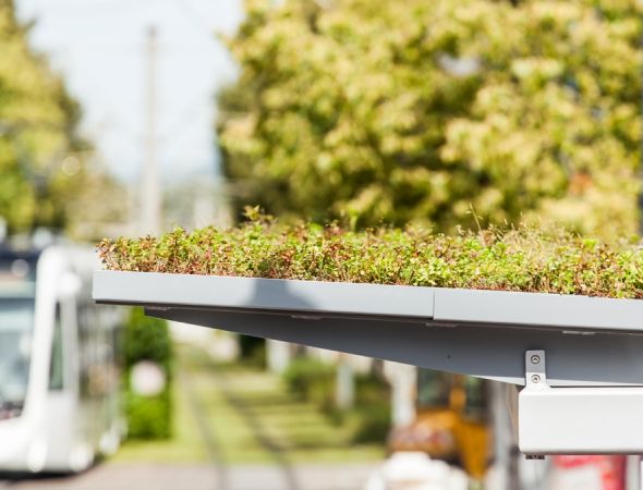 Die Dächer der vier Unterstände an der Haltestelle Maria-von-Rudloff-Platz erhalten im Zuge eines ohnehin anstehenden Umbaus begrünte Dächer.