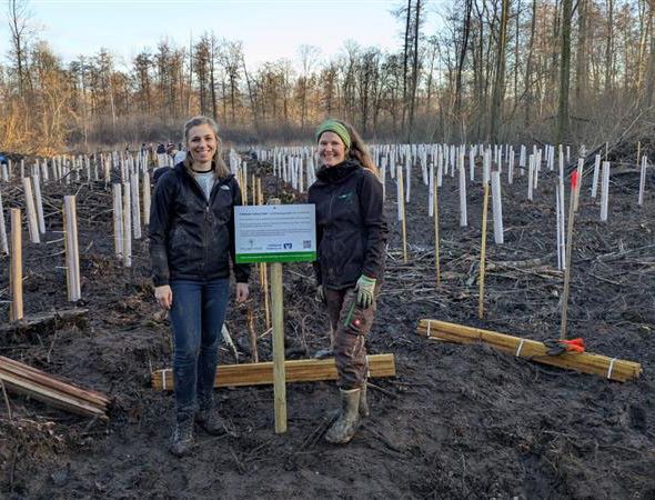 Gemeinsam mit der Aufforstungsorganisation myreforest pflanzt die Volksbank Freiburg 800 Bäume im Schallstädter Mooswald – 1.600 weitere folgen noch.