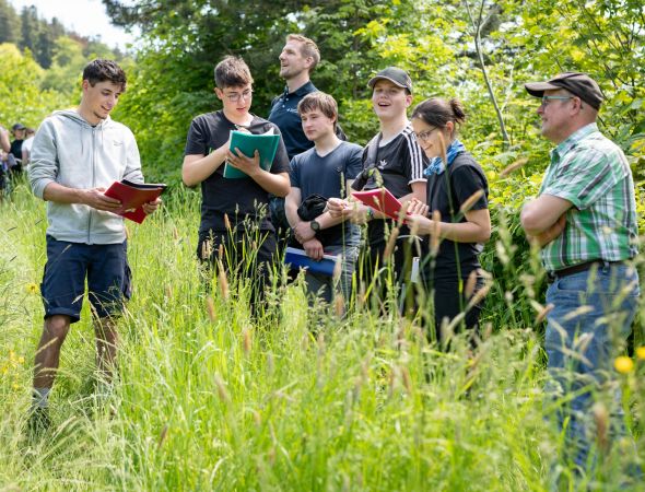 Südschwarzwald – Bei der sechsten Schüler-Wiesenmeisterschaft haben 29 Landwirtschafts-Auszubildende im ersten Lehrjahr der Edith-Stein-Schule in Freiburg am Donnerstag, 25. Mai 2023, das Prinzip der Wiesenmei…