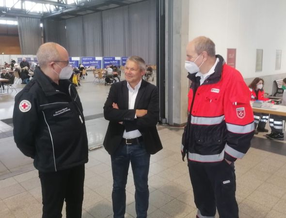 Freiburg. Während der Bombenentschärfung haben am Samstag, 14.01.2023 die drei Hilfsorganisationen Deutsches Rotes Kreuz, Johanniter-Unfall-Hilfe und Malteser Hilfsdienst über 170 Betroffene in der Messe Freib…