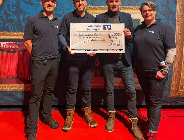 Mit einer Spende in Höhe von 3.000 Euro und tatkräftiger Hilfe vor Ort hat die Volksbank Freiburg in diesem Jahr die Aktion von „Wir helfen Kindern e.V“ im Circolo unterstützt.