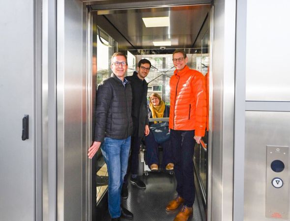 Erster erneuerter Aufzug auf der Stadtbahnbrücke geht in Betrieb