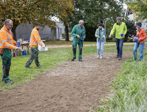 Südschwarzwald/Kirchzarten – Eine große Grünfläche in der Ortsmitte von Burg-Birkenhof soll blumenbunt und insektenfreundlich werden. Im Rahmen der Kampagne „Blühender Naturpark“ wurde am Freitag von Kindern d…