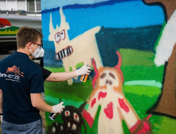 Am vergangenen Montag, den 25.07.2022, haben Auszubildene der badenova und der Schwarzwaldmilch mit dem Künstler Inzoolo eine Trafostation in der Eschholzstraße zu ei…