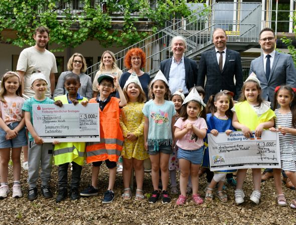 Richtfest beim Kinder- und Familienzentrum Violett - Volksbank und Sparkasse spenden 6.000 Euro