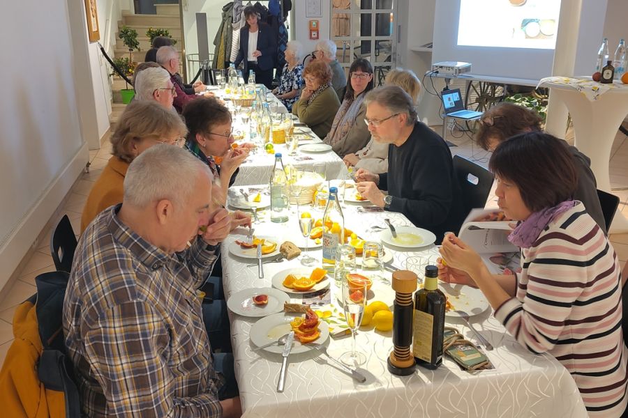 Vorstandsmitglieder der Europäischen Mozartwege v. l. n. r.: Dr. Barbara Gilsdorf, Prof. Dr. Angela Romagnoli, Prof. Dr. Karl Böhmer, Stephan David Hummel, Präsidentin Dr. Maria Majno, Dr. Sabine Krohn, Susanne Zauner