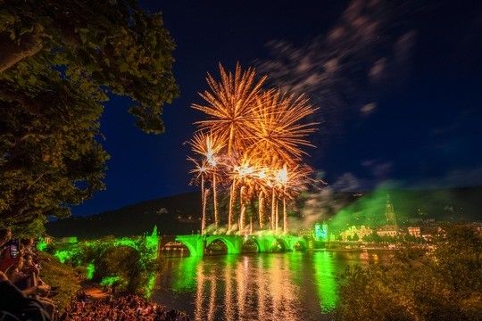 Einen hervorragenden Blick auf das Ereignis garantieren das nördliche Neckarufer, der Philosophenweg und die Nepomuk-Terrasse sowie die Scheffelterrasse im Schlossgarten.