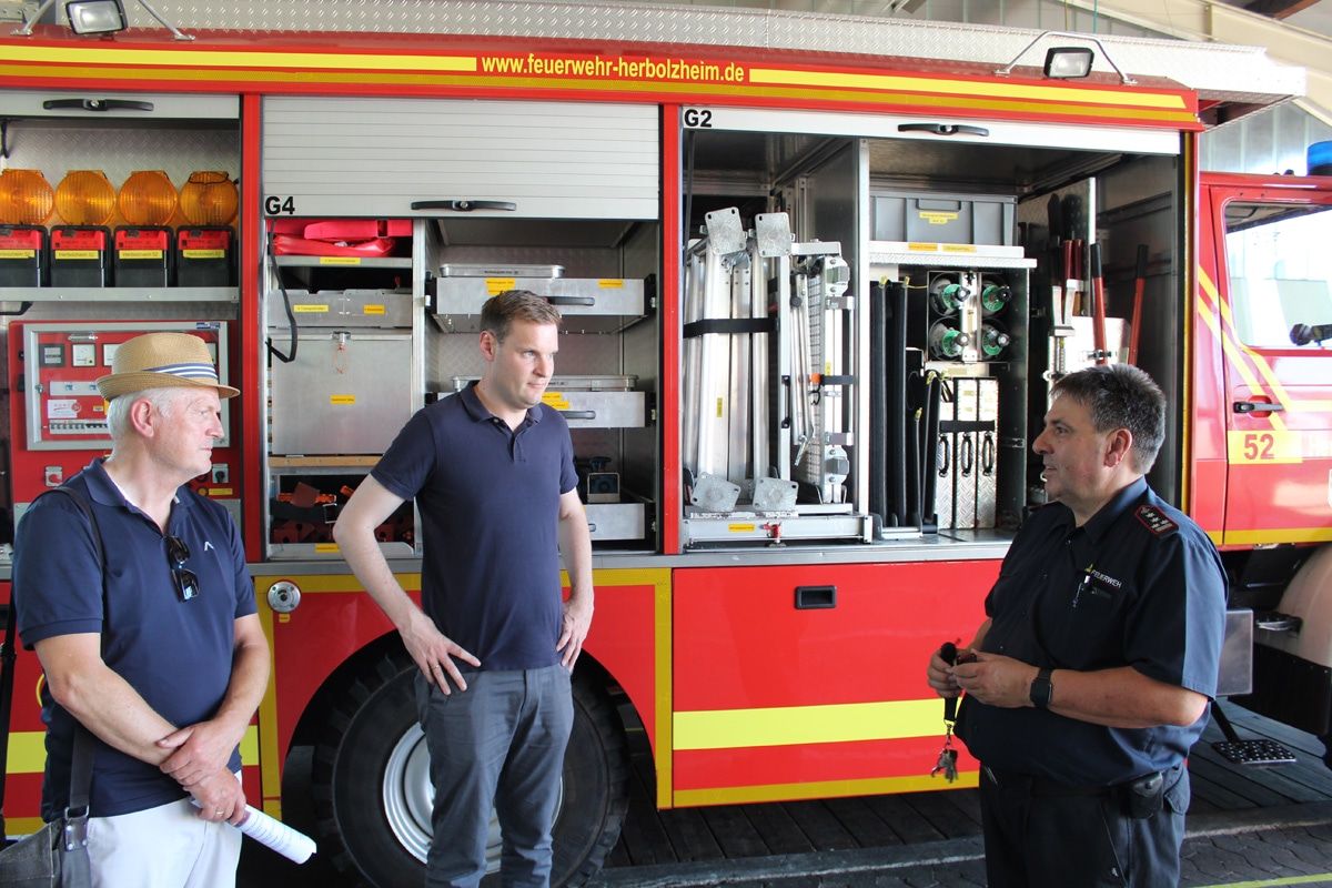 Besonderes Augenmerk bei dem Gespräch mit Kommandant Martin Hämmerle und dessen Stellvertreter Timo Pfaff lag daher auf den Fähigkeiten der Herbolzheimer Wehr im Bereich des Bevölkerungs- und Katastrophenschutzes. Wie Martin Hämmerle und Timo Pfaff erläuterten, sei die Wehr gut für den Bevölkerungsschutz aufgestellt und auch regelmäßig überregional im Einsatz, beispielsweise bei der Ahrtal-Flut. Im Gegensatz zu früheren Jahren gebe es in Herbolzheim jedoch keine Spezialfahrzeuge des Bundes für den Katastrophenfall mehr, Bedarf dafür gebe es jedoch weiter.