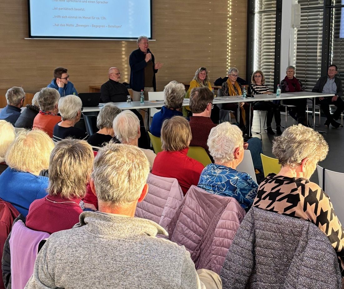 Großen Raum nahm beim Seniorenforum der Rückblick auf die vergangenen 2 Jahre ein. Denn im Mai 2023 wurde erstmals ein Seniorenbeirat gewählt. Seit dieser Zeit organisierten die Mitglieder des Seniorenbeirats in seinen monatlichen Treffen ein vielfältiges Programm zu unterschiedlichsten Themen: Beginnend mit einer "Städtletour" durch Herbolzheim, bei der während eines gemeinsamen Spaziergangs Vorschläge für mehr Beschattung und Begrünung, eine sichere Verkehrsführung für alle Verkehrsteilnehmer sowie eine insgesamt barrierefreie Gestaltung der Stadt erarbeiteten. Ein weiteres frühes und zentrales Projekt des Seniorenbeirats ist der wöchentliche Bewegungstreff, der die körperliche Beweglichkeit von Seniorinnen und Senioren stärken soll. Er findet ganzjährig mittwochs von 10 Uhr – 10:30 Uhr ohne Anmeldung und kostenfrei im Stadtgarten statt. Darüber hinaus führte der Seniorenbeirat zahlreiche Info-Veranstaltungen zu verschiedenen Themen wie etwa Mobilität im Alter, digitale Kompetenzen, finanzielle Sicherung im Alter, Pflege und Sterbebegleitung sowie Hören im Alter und Verhalten im Brandfall durch. Im Ausblick machten die Seniorenbeiräte auf den Bürgerbus sowie auf die geplante Kooperation des Seniorenbeirats mit den Kitas und Kindergärten in Herbolzheim aufmerksam. Zukünftig können sich Bürgerinnen und Bürger über 65 Jahre durch Vorlesen, Musizieren, Spielen, Kochen und Backen uvm. als Paten in die Kinderbetreuung einbringen. Des Weiteren plant der Seniorenbeirat weitere Touren - diesmal durch die Ortsteile.