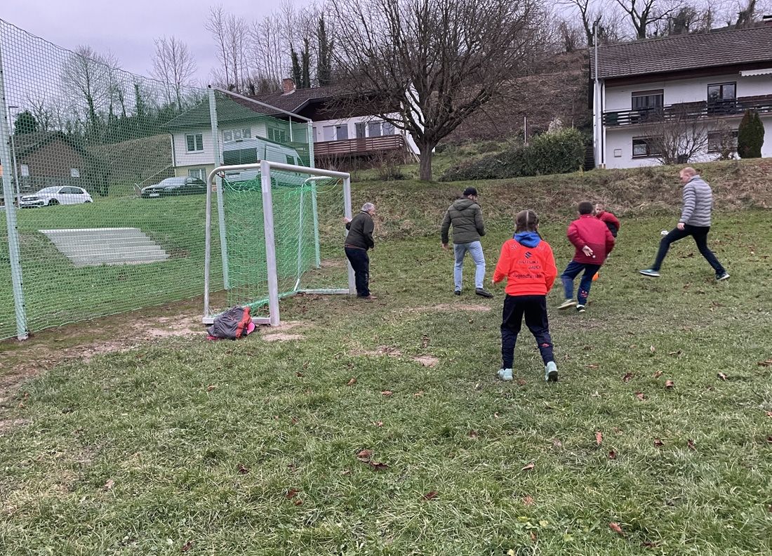 Zwei neue Kleinfeldtore (3 m x 2 m) und zwei 15 m x 4 m große Ballfangnetze garantieren Fußballspaß. Bürgermeister Thomas Gedemer, Ortsvorsteher Thomas Hofstetter und Ortschaftsrat Sebastian Huber testeten gemeinsam mit einigen jungen Kickerinnen und Kickern, was der Platz hergibt. Das Fazit war durchweg positiv. Auch die Kids sind begeistert. Die Größe sei prima, sagten sie auf Nachfrage von Sebastian Huber.