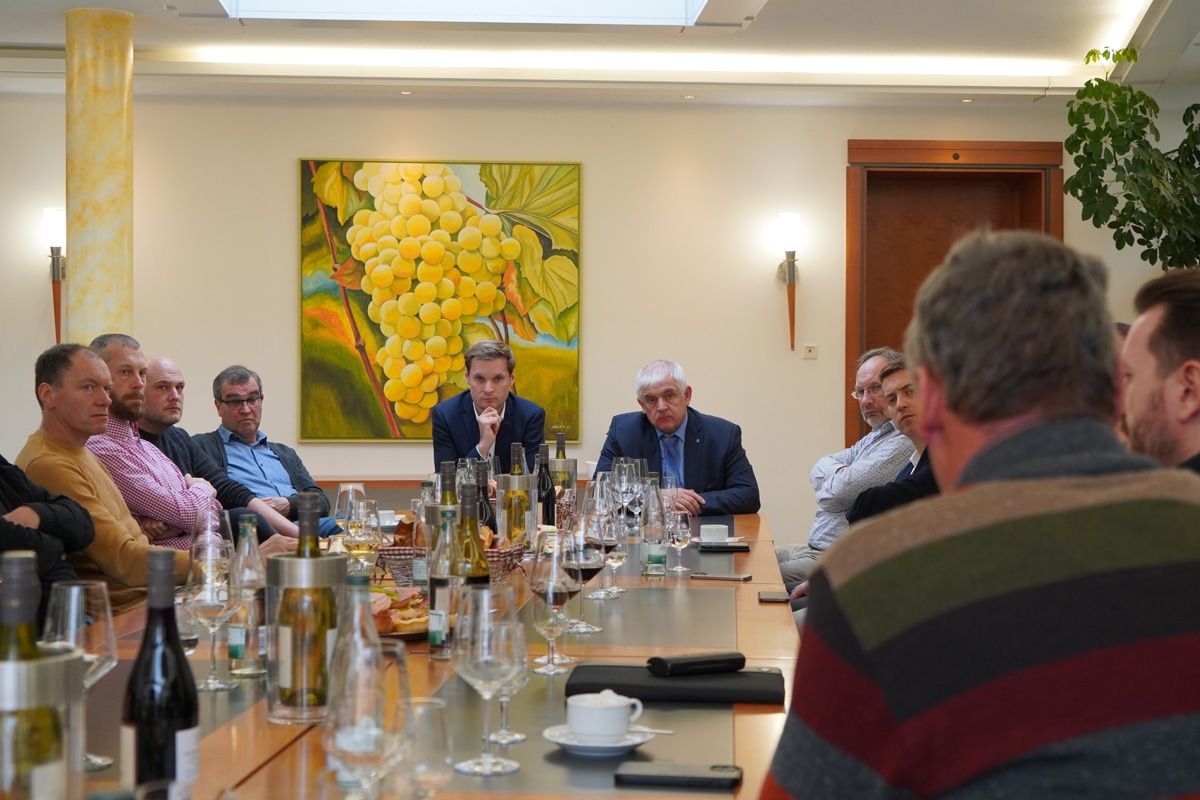 Zu einem Austausch mit Vertretern der Winzergenossenschaften und Weingüter der Region hat der CDU-Bundestagsabgeordnete Yannick Bury in die Winzergenossenschaft Königschaffhausen-Kiechlinsbergen eingeladen. Gast war der Vorsitzende des Bundestagsausschusses für Landwirtschaft und Ernährung, Hermann Färber (CDU), der auf Einladung von Bury die Region besuchte.