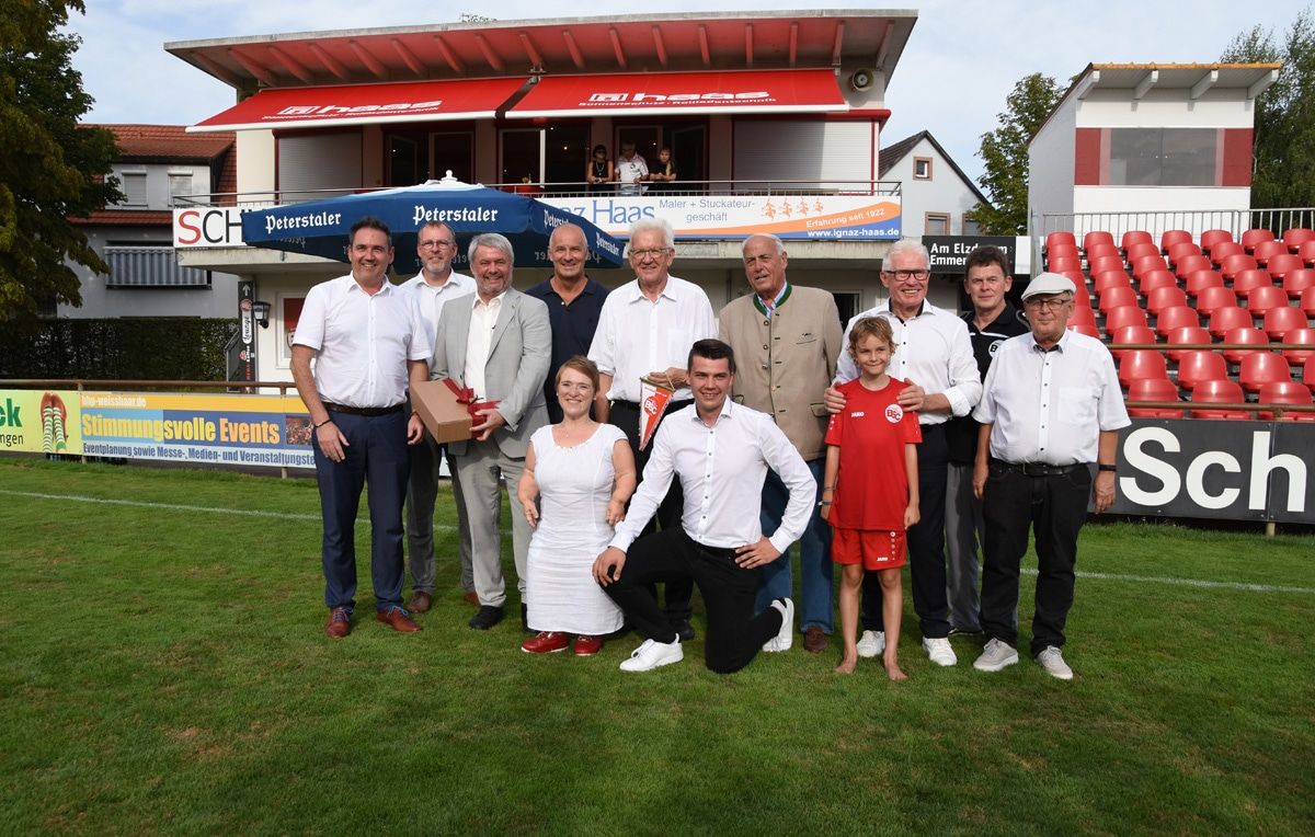 v.l.n.r. Arno Heger (Vorsitzender Bezirk Freiburg), Bürgermeister Harald Lotis, Jan Elert (Sportentwicklung Badischer Sportbund Freiburg), Michael Dägele (Hauptamtsleiter Gemeinde Bahlingen), Simone Fischer (Beauftragte der Landesregierung für Belange von Menschen mit Behinderungen), Ministerpräsident Winfried Kretschmann, Yannick Adler (Geschäftsführer Bahlinger SC), Gundolf Fleischer (Präsident Badischer Sportbund Freiburg), Nachwuchsspieler Vincent Müller, August Zügel (Vorstand Sponsoring Bahlinger SC), Wolfgang Bühler (Vorstand Finanzen Bahlinger SC), Dieter Bühler (Vorstandsvorsitzender Bahlinger SC).
