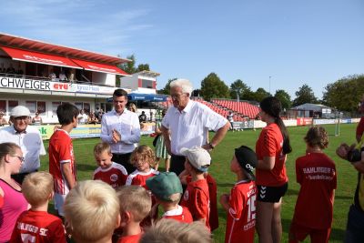 Vorstandsvorsitzender des BSC-Dieter Bühler begrüßte Ministerpräsident Winfried Kretschmann in einer kurzen Laudatio: „Es ist uns eine große Ehre, das Sie auf ihrer Sommertour uns hier beim SC Bahlingen besuchen.“ Er gab ein paar kleine Einblicke über den Verein und seine Infrastruktur.