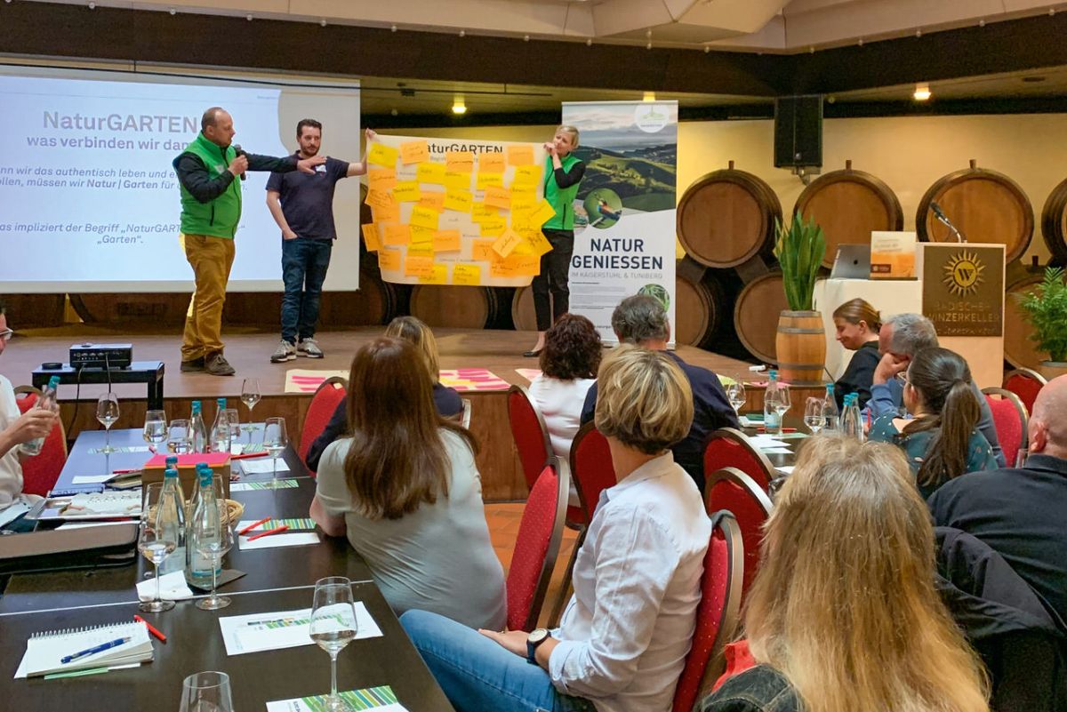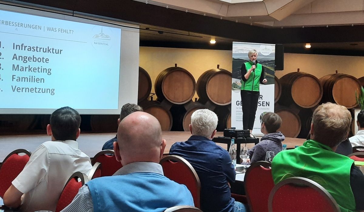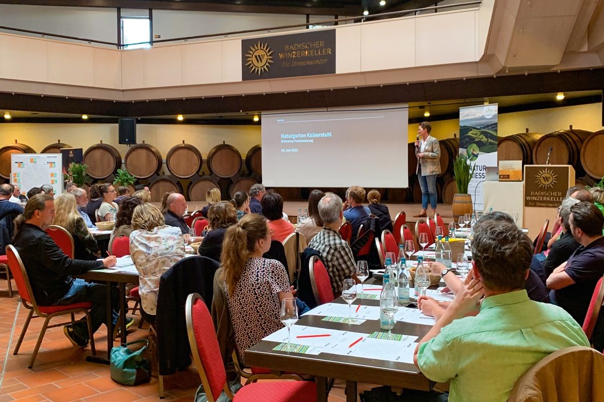Rund 60 Vertreterinnen und Vertreter der Bürgerschaft, der Weinwirtschaft, der touristischen Leistungsträger-, der Vereine und ehrenamtlichen Organisationen sowie der Politik lauschten am Donnerstag, 02. Juni 2022 den Ergebnissen der Online-Umfrage und legten danach in einem vierstündigen Workshop den ersten Grundstein für die zukünftige Ausrichtung der Naturgarten Kaiserstuhl GmbH. Diese baut auf dem im Jahr 2019 von der FH Westküste erarbeiteten Tourismusentwicklungskonzept auf.